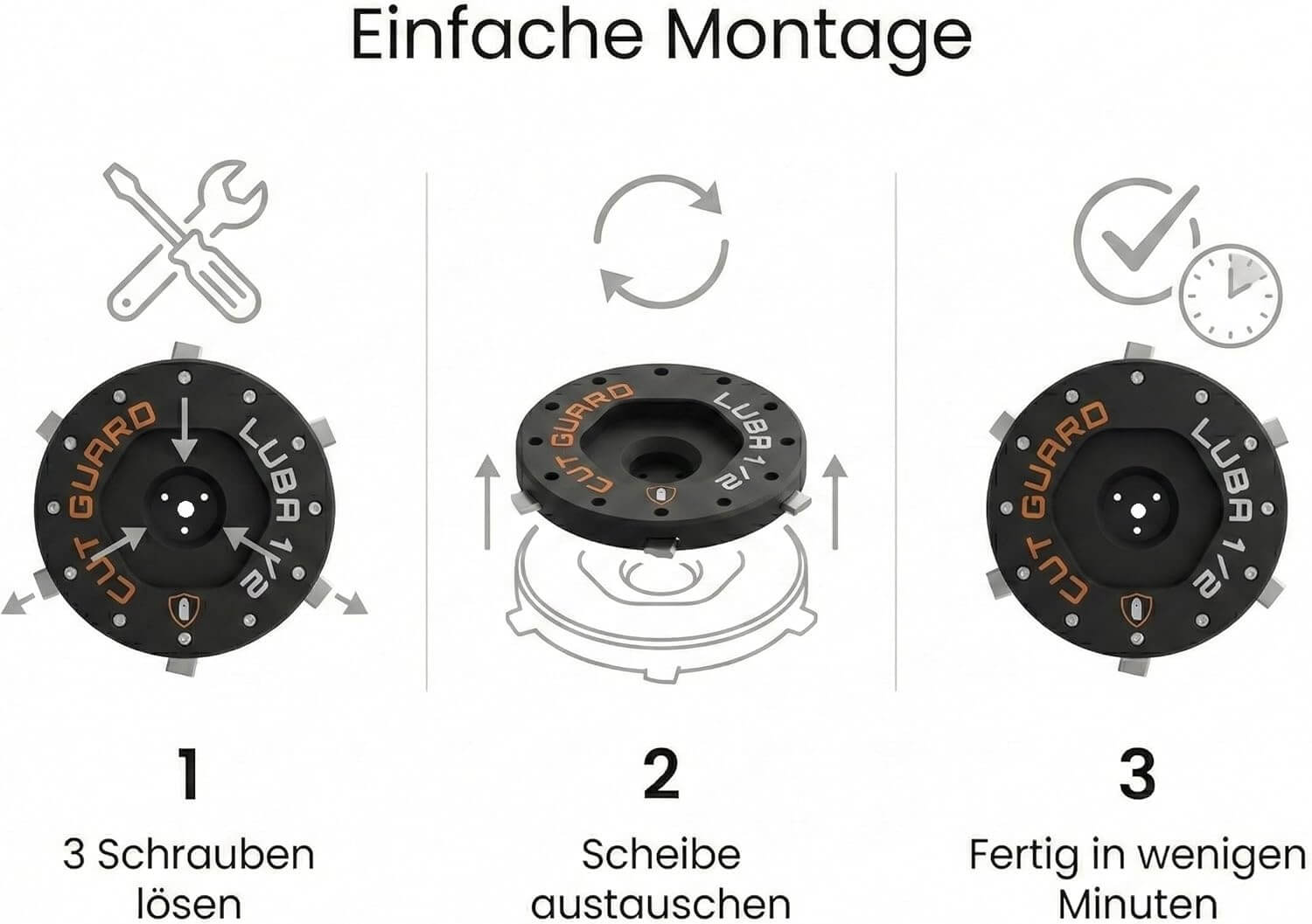Installation is completed in just a few minutes: simply loosen three screws, replace the disc, and you’re done. The cutting discs are compatible with common replacement blades of type 35 mm, which are always affordably available.